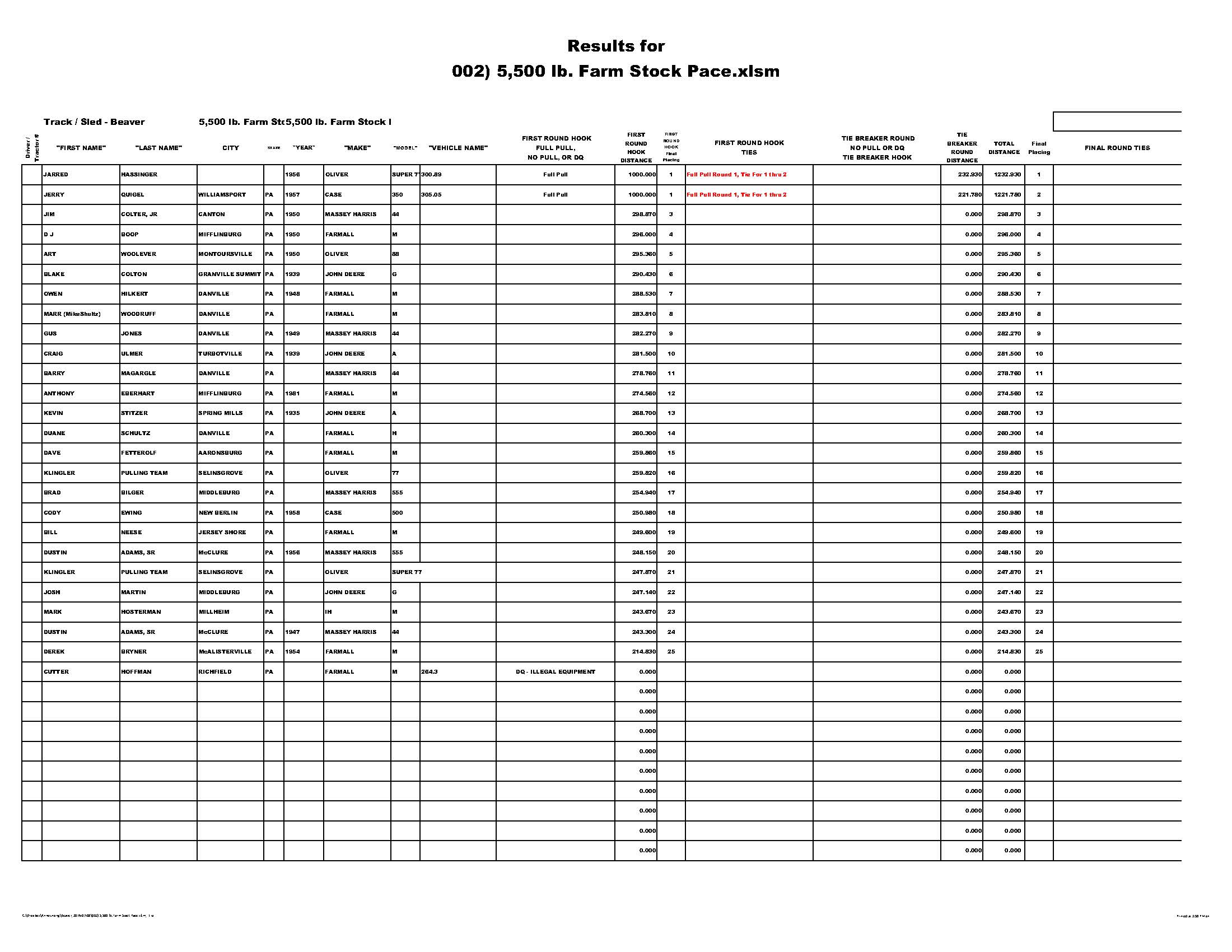 So what is a mystery class? Well it was a mystery to me too. So that is what I named it. The actual weight class was set by the drivers at the drivers meeting and instead of competing as a group with the winner determined by a single pull, the drivers were put into a bracket whereby a pair of drivers were matched up against each other by the luck of the numbers drawn for pulling position. Then the winner of the pair would advance up the ladder of the bracket to take on the other bracket winners until there was only one "winner take all" mystery class champion.