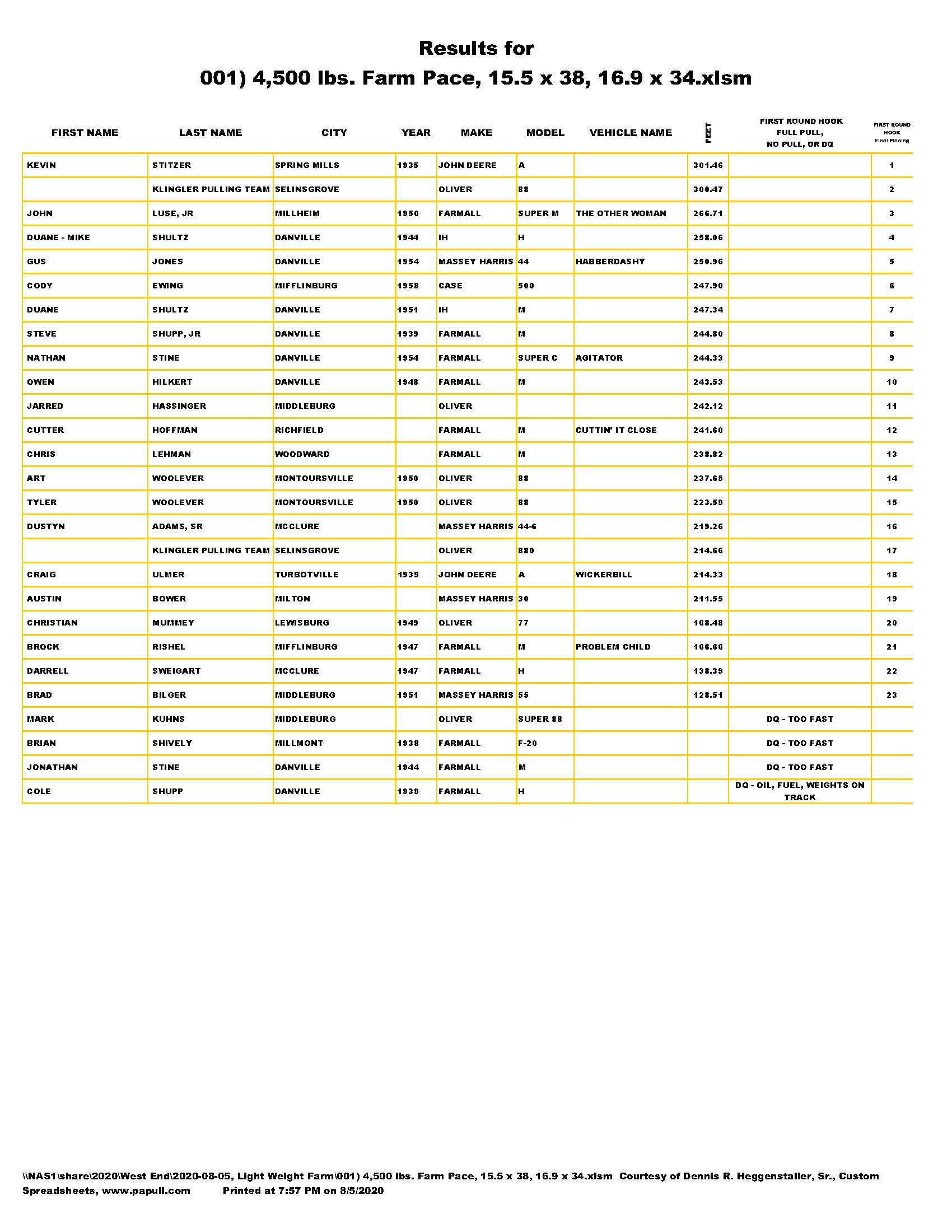 Light Farm Stock Pace Pull, August 5, 2020