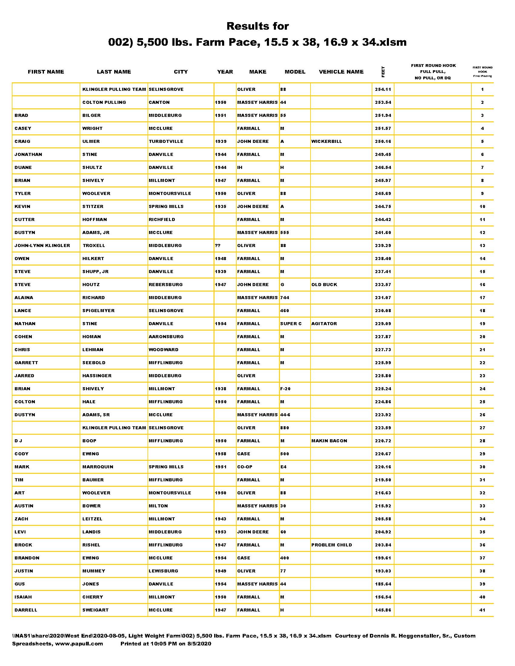 Light Farm Stock Pace Pull, August 5, 2020