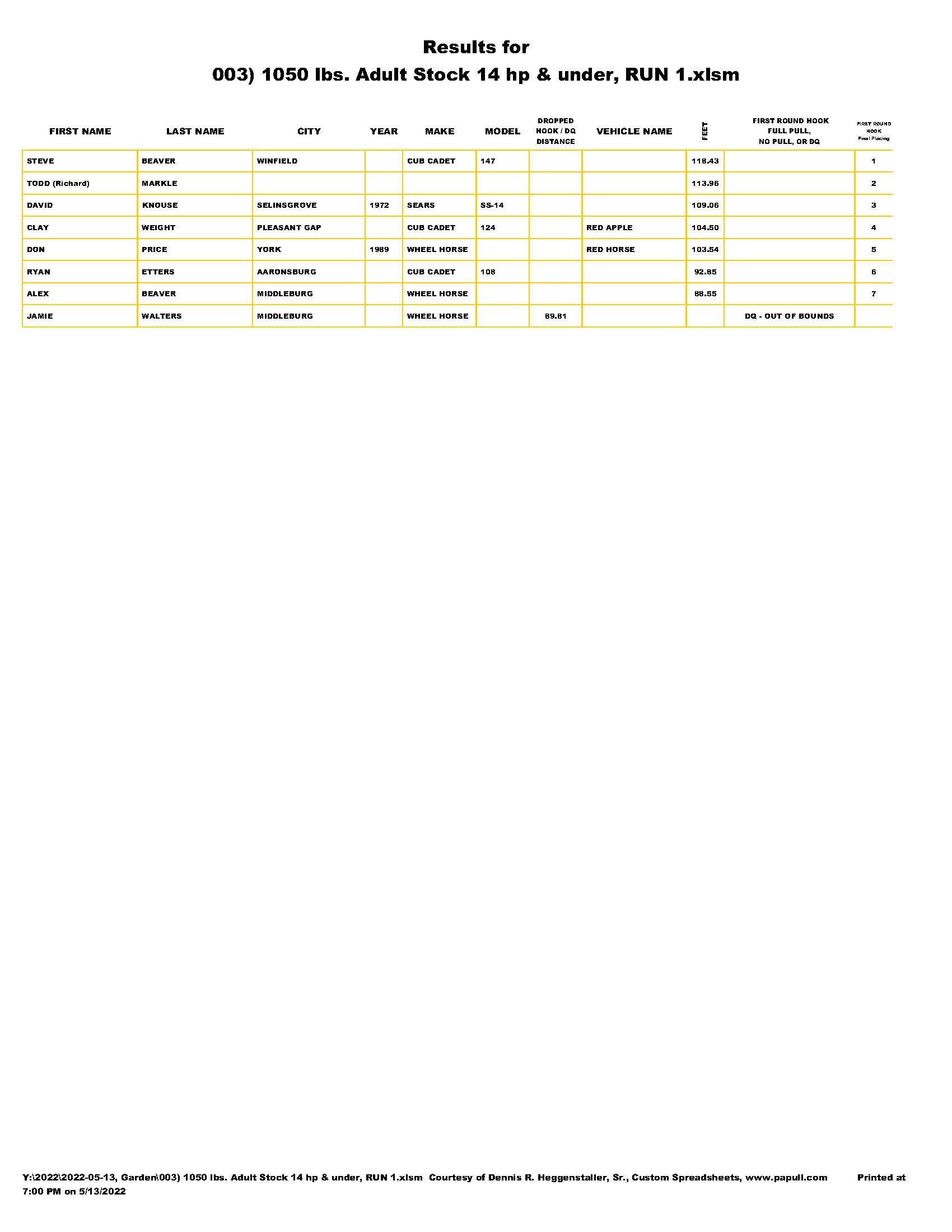 | 001) 1050 lbs. Youth Stock 14 hp & under, RUN 1.pdf |