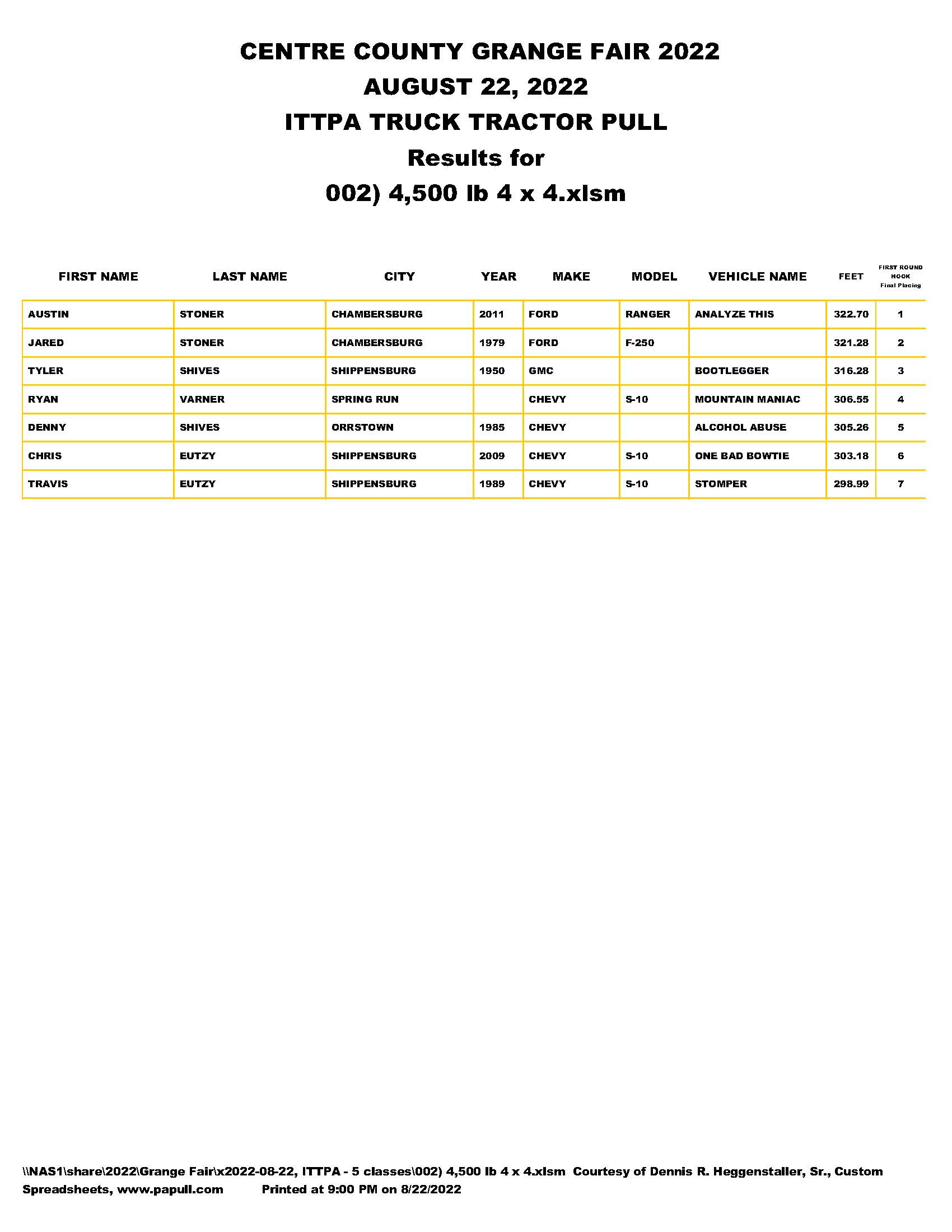 LYCOMING COUNTY FAIR 4X4, 2022