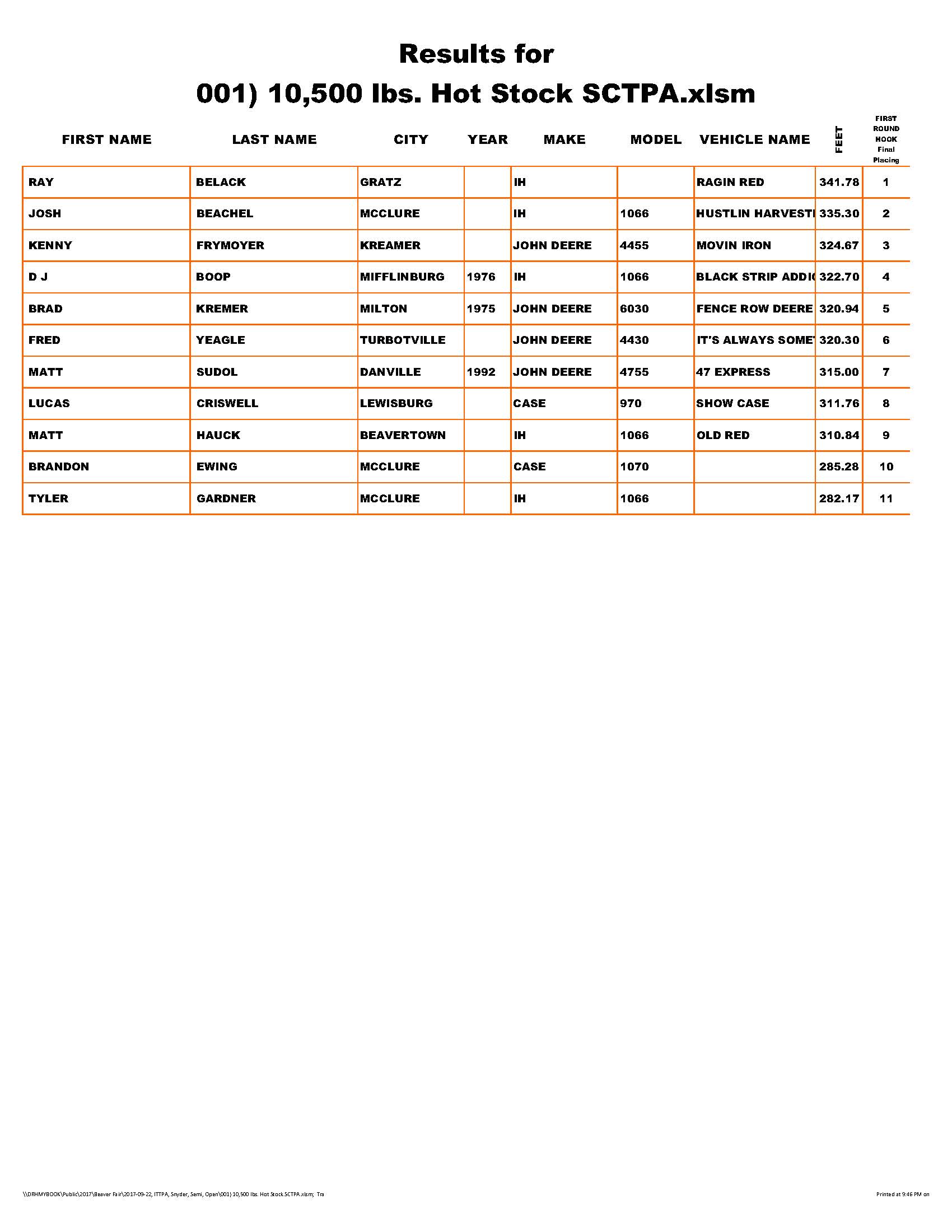 DUE TO MECHANICAL BREAKDOWN OF THE COMPETITION SLED ONLY ONE CLASS WAS COMPLETED ON FRIDAY EVENING.