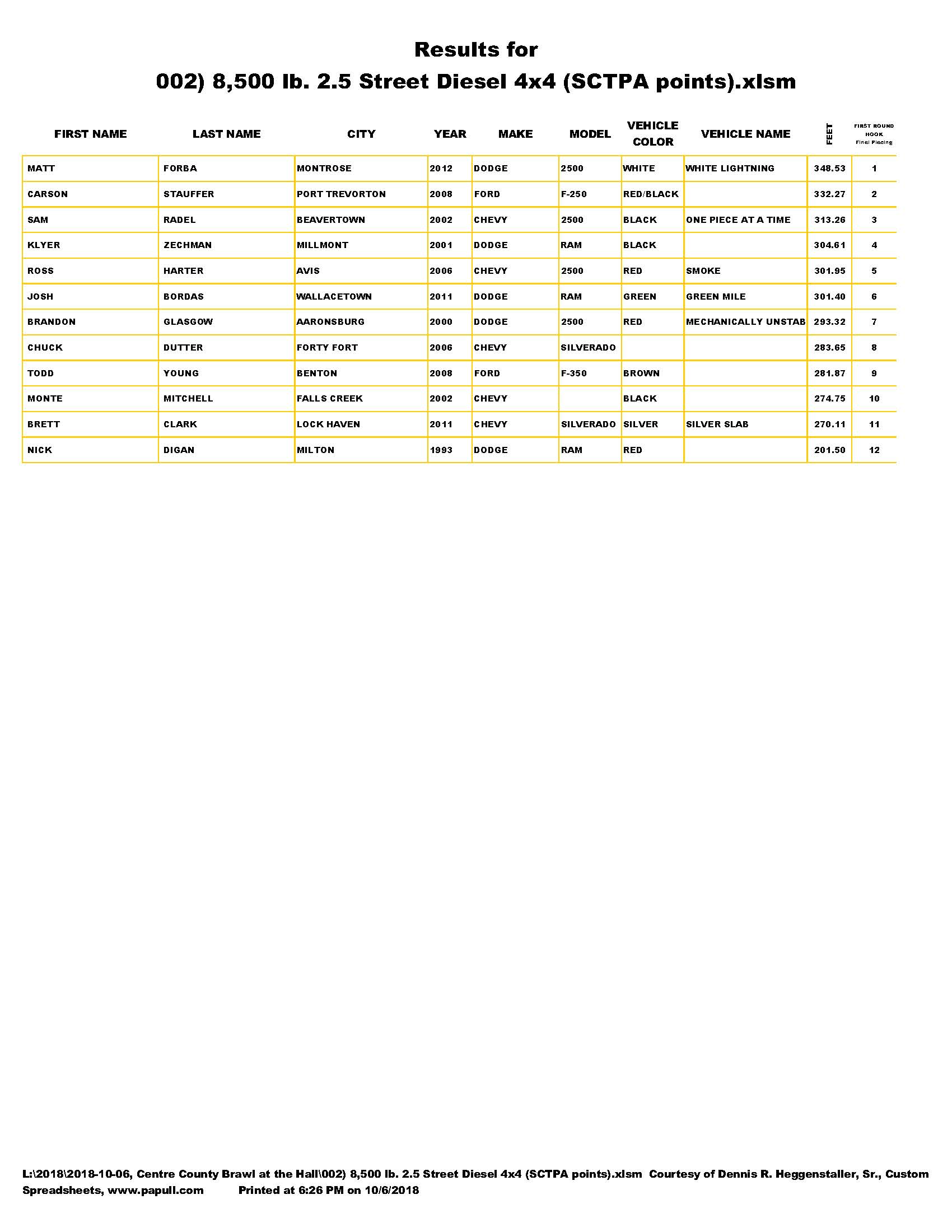 CENTRAL PENNA PULLERS 2018